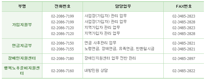 해당 지사의 담당 업무를 수행하는 부서의 연락처가