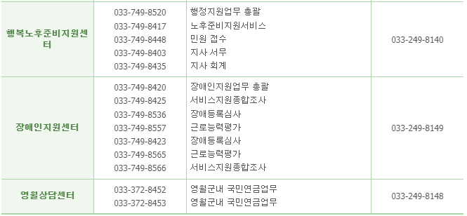 해당 지사의 담당 업무를 수행하는 부서의 연락처가