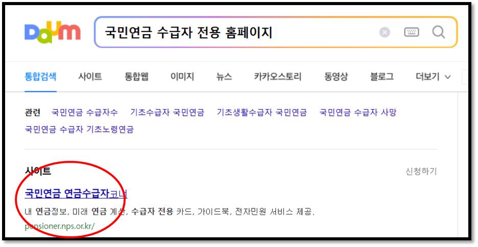 다음검색창에 '국민연금 수급자 전용 홈페이지' 검색