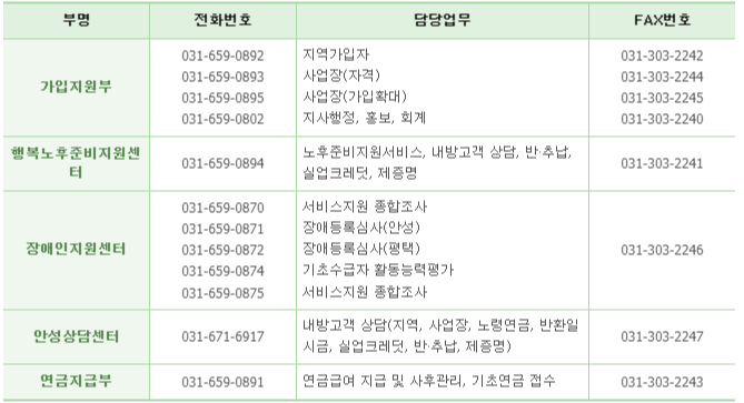 해당 지사의 담당 업무를 수행하는 부서의 연락처가