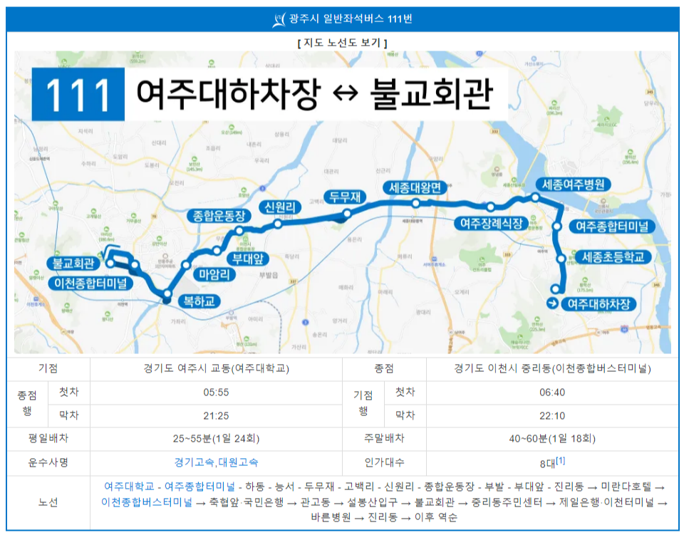 경기도 광주 111번 버스 기점, 종점, 노선정보입니다.
