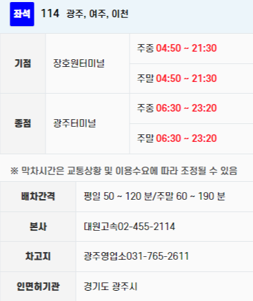 경기도 광주 114번 버스 기점, 종점, 노선정보입니다.