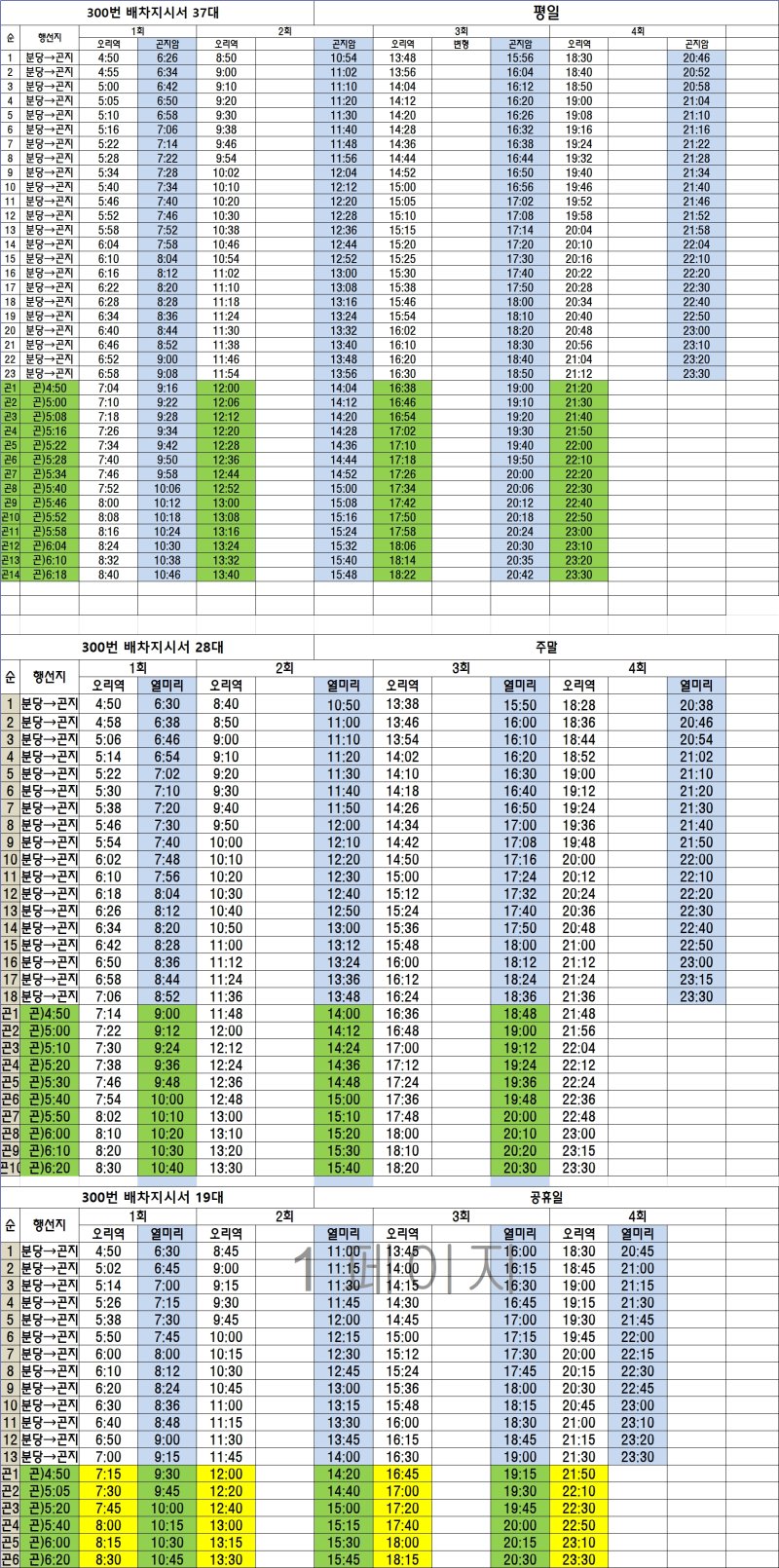 ◆ 경기 광주, 성남 300번 버스 운행시간표