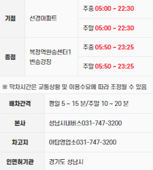 성남 60번 버스(선경 아파트<->복정역환승주차장) 기점 종점 노선 배차간격 차고지 전화번호 (0) | 2023.04.05 |