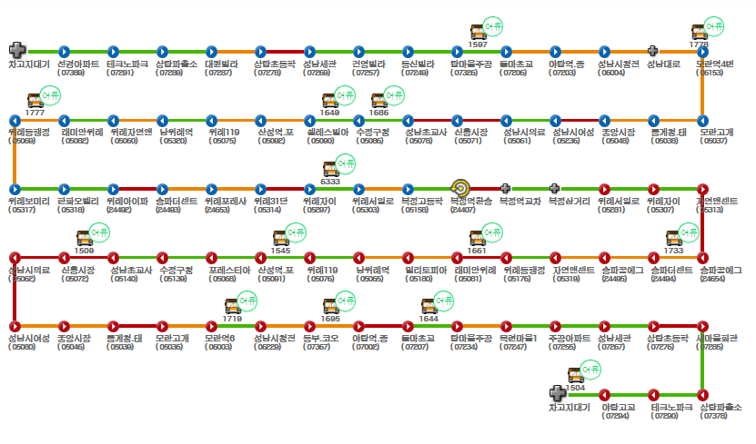 성남예비군훈련장에서 야탑/모란/산성역, 위례신도시를 거쳐 복정역까지 가는 일반시내버스 노선이다.