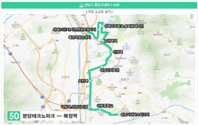 성남 50번 버스 기점, 종점, 노선정보입니다.