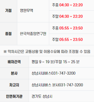 ◆ 성남 220번 버스 운행 정보