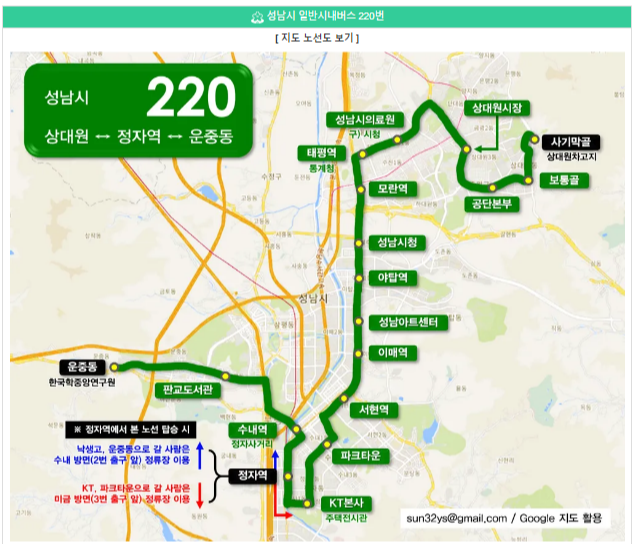 ◆ 성남 220번 버스 노선 정보
