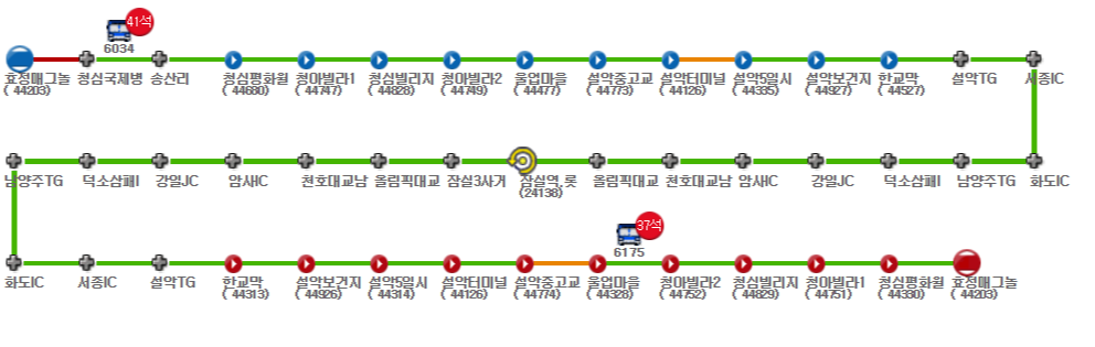 직행좌석버스 노선으로 가평군 설악면 송산리(HJ매그놀리아국제병원)와 서울시 송파구 잠실역을 잇는다