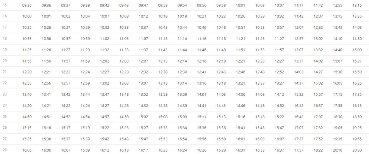 평일운행시간표