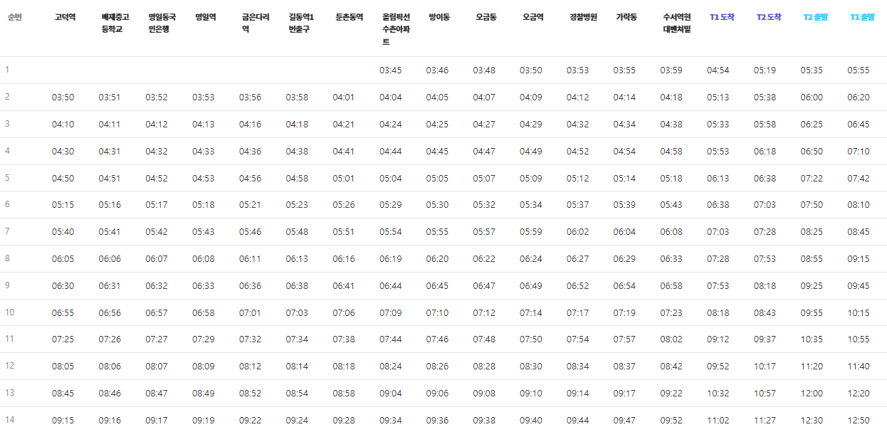 ◆  공항버스 6300번 운행시간표