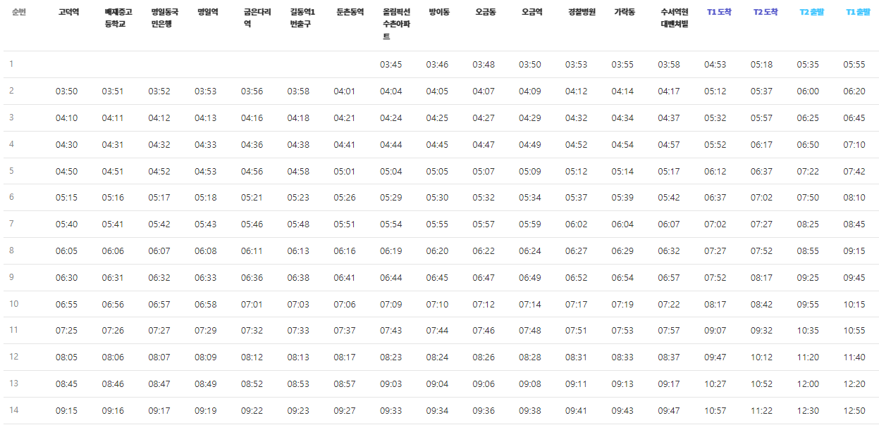 공항버스 6300번 시간표 운행노선도 요금 승하차장