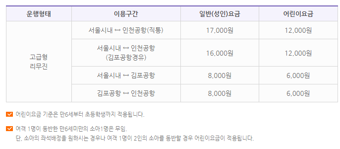 ◆  공항버스 6011번 요금 정보