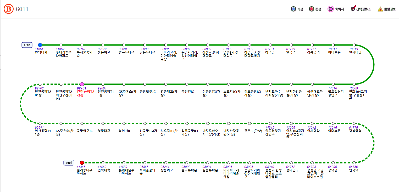 공항버스 6011번 시간표 요금 운행노선도 실시간 위치확인
