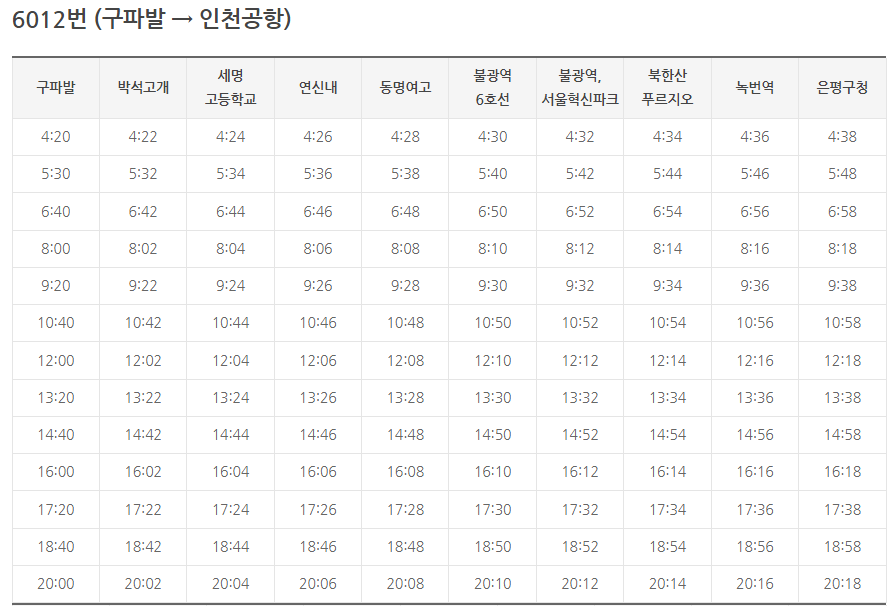 공항버스 6012번 시간표 운행노선도 요금 정류소위치 실시간위치조회