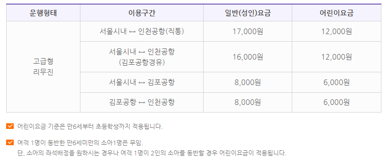 ◆  공항버스 6016번 요금 정보