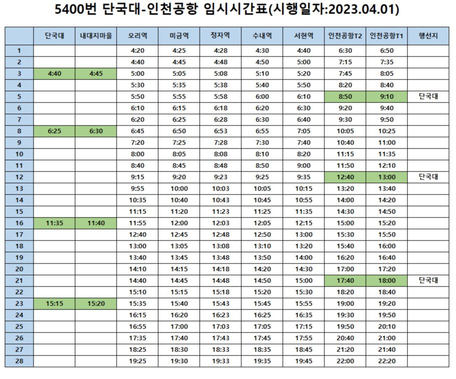 인천공항버스 5400번 공항버스 버스시간표 운임표 타는곳