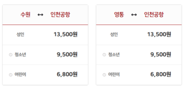 ◆  공항버스4100번 운행요금