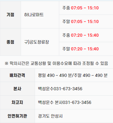 안성버스 1-4번 노선정보 배차시간 실시간위치조회