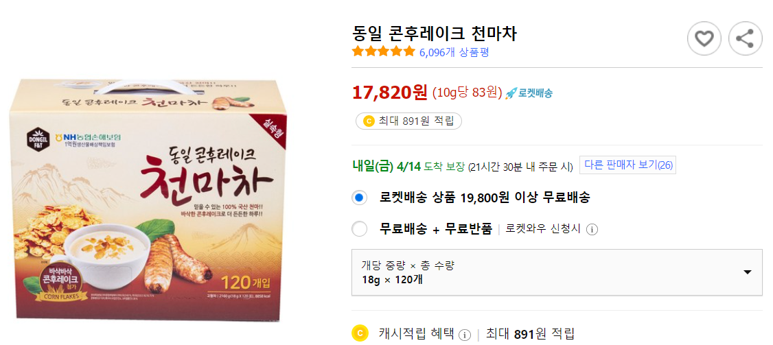 후기도 좋고 맛도 좇은 천마차를 링크 걸어드리니 필요하신분은 구매하여 식사대용으로 드셔보세요