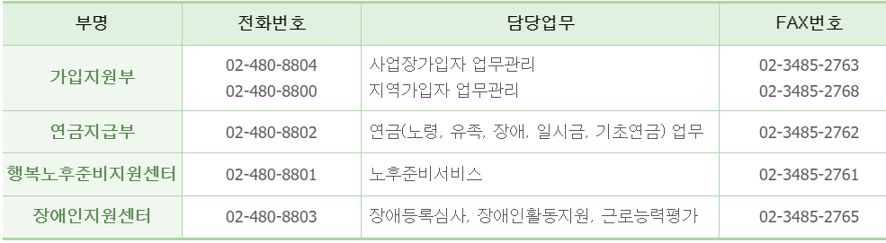 해당 지사의 담당 업무를 수행하는 부서의 연락처가