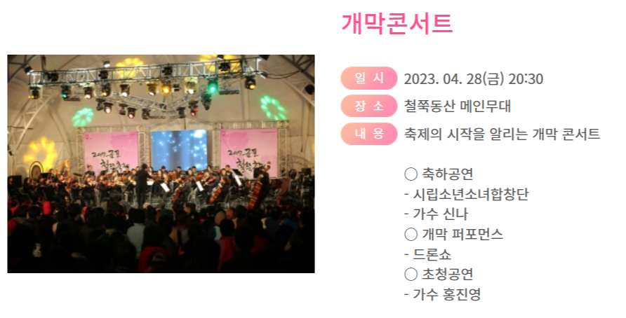 군포에서 진행되는 봄축제 철쭉축제는 다양한 행사와 체험프로그램이 준비되어 있어 볼거리 즐길거리가 많은 축제인것 같습니다. 가족들과 함께 주말나들이로 군포 꽃축제에서 즐거운 추억 만드시길 랍니다.