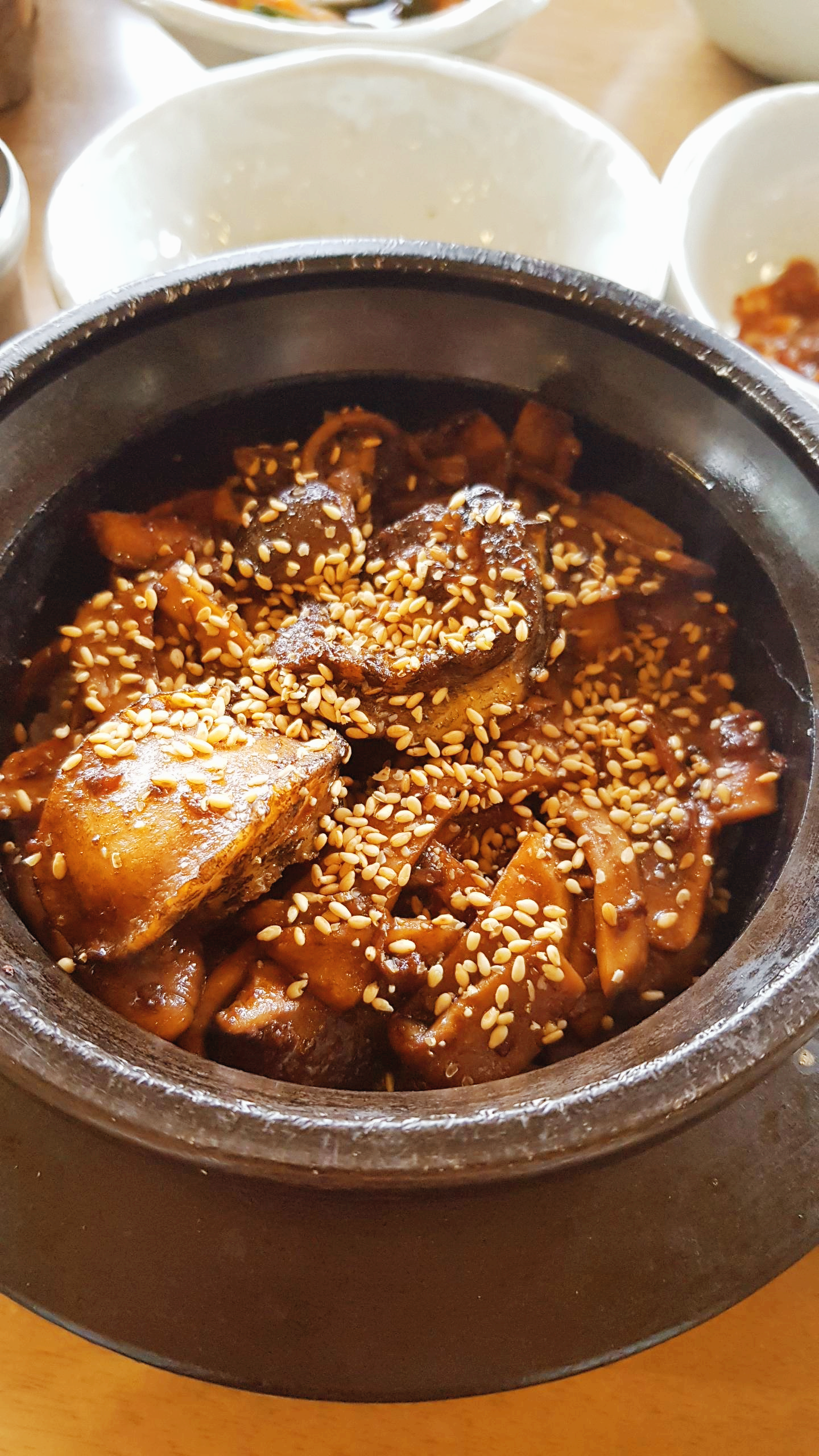 버섯과 전복이 많이 들었고 메인음식과 반찬들이 전체적으로 짜지 않고 건강하게 맛있었다