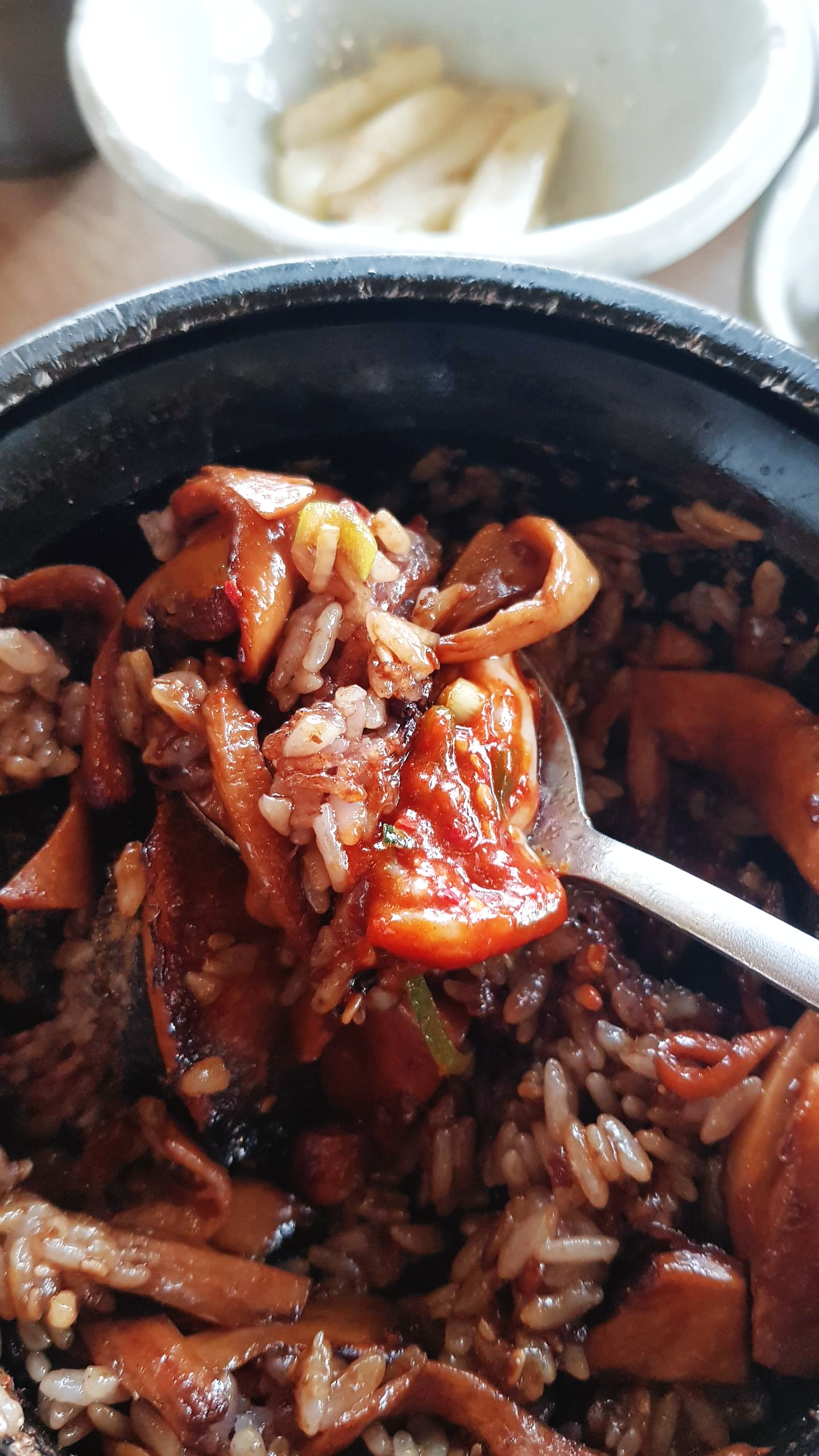 우리는 마지막까지 뜨끈뜨끈하게 돌솥밥을 먹고 싶어서 그냥 누룽지는 포기하고 돌솥밥에 집중했다