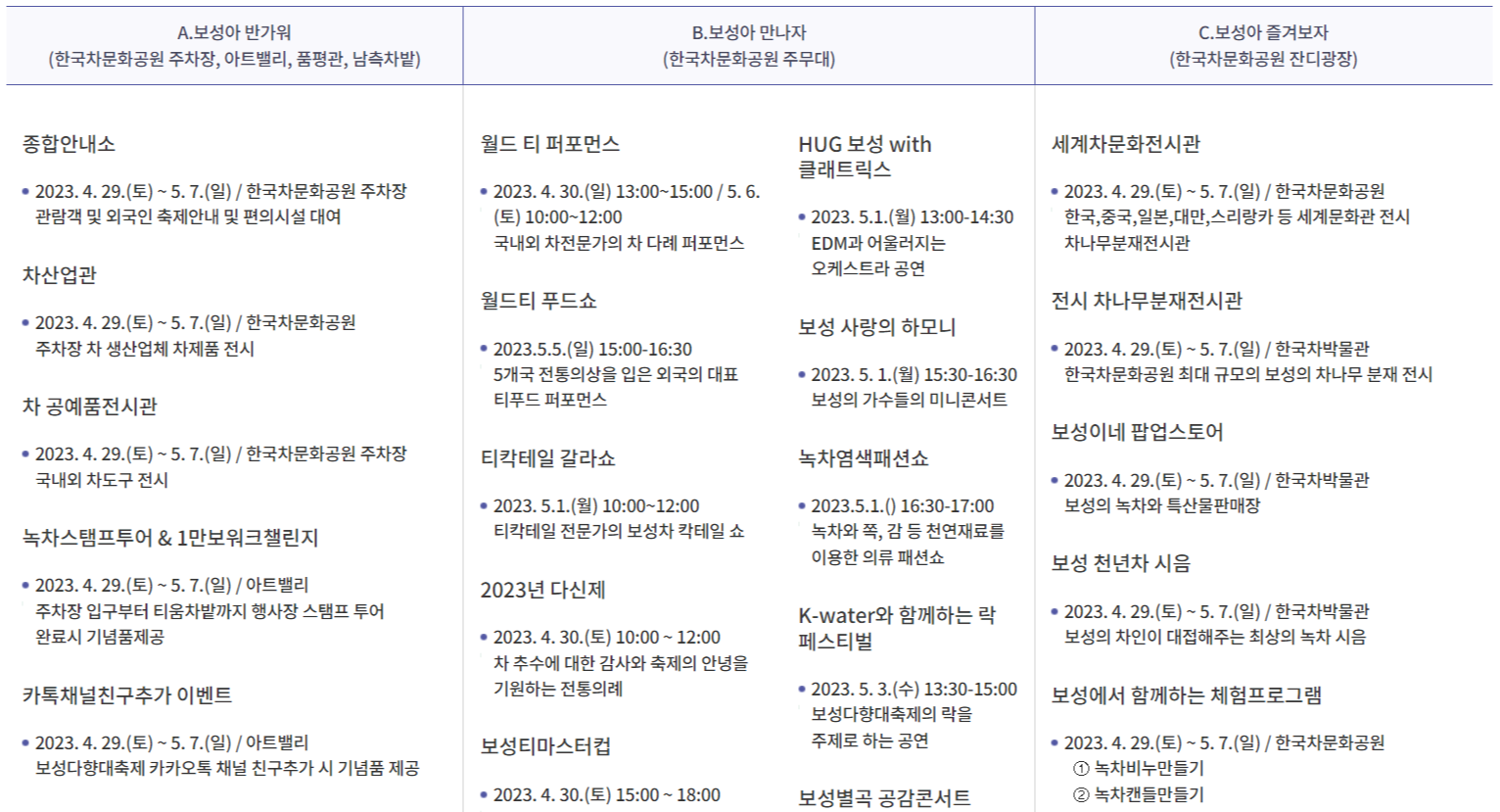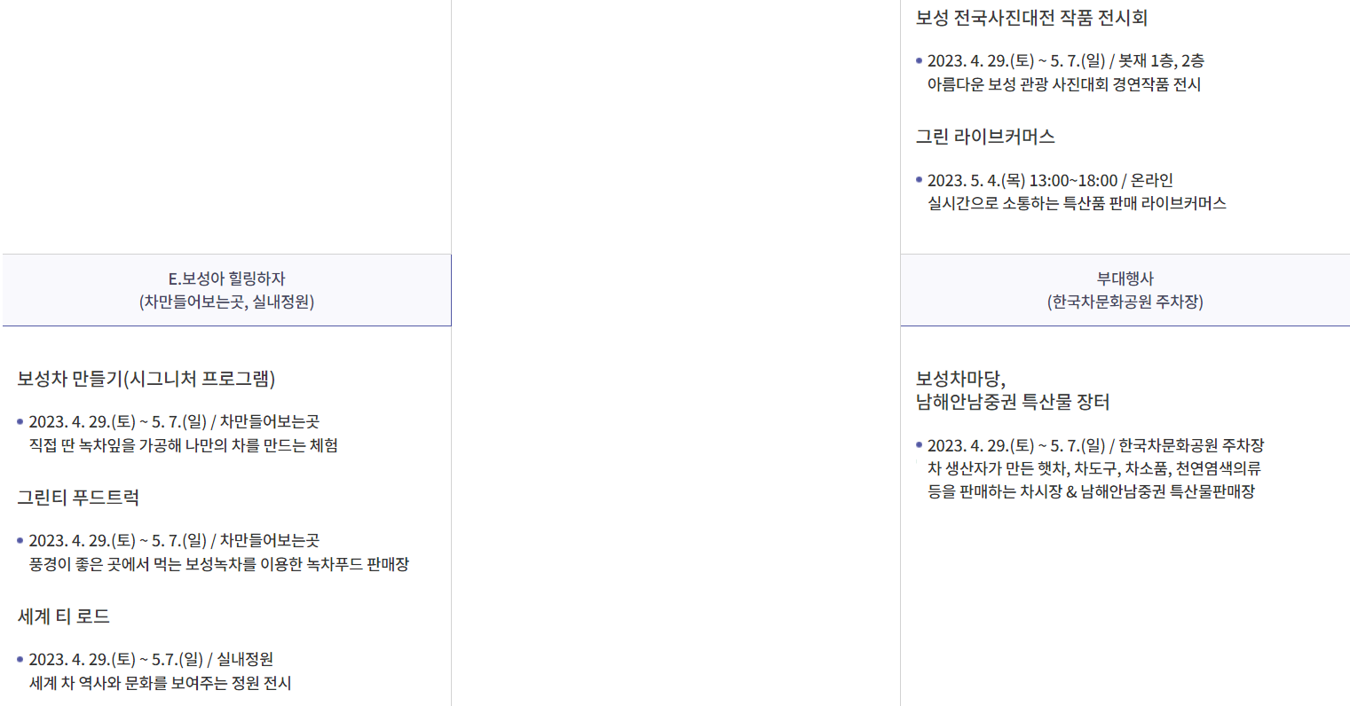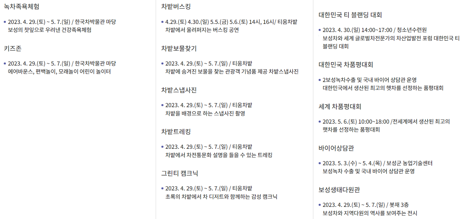 오늘은 문화체육 관광부 우수축제 중 하나인 "보성 다향 대축제"정보를 알려드릴께요