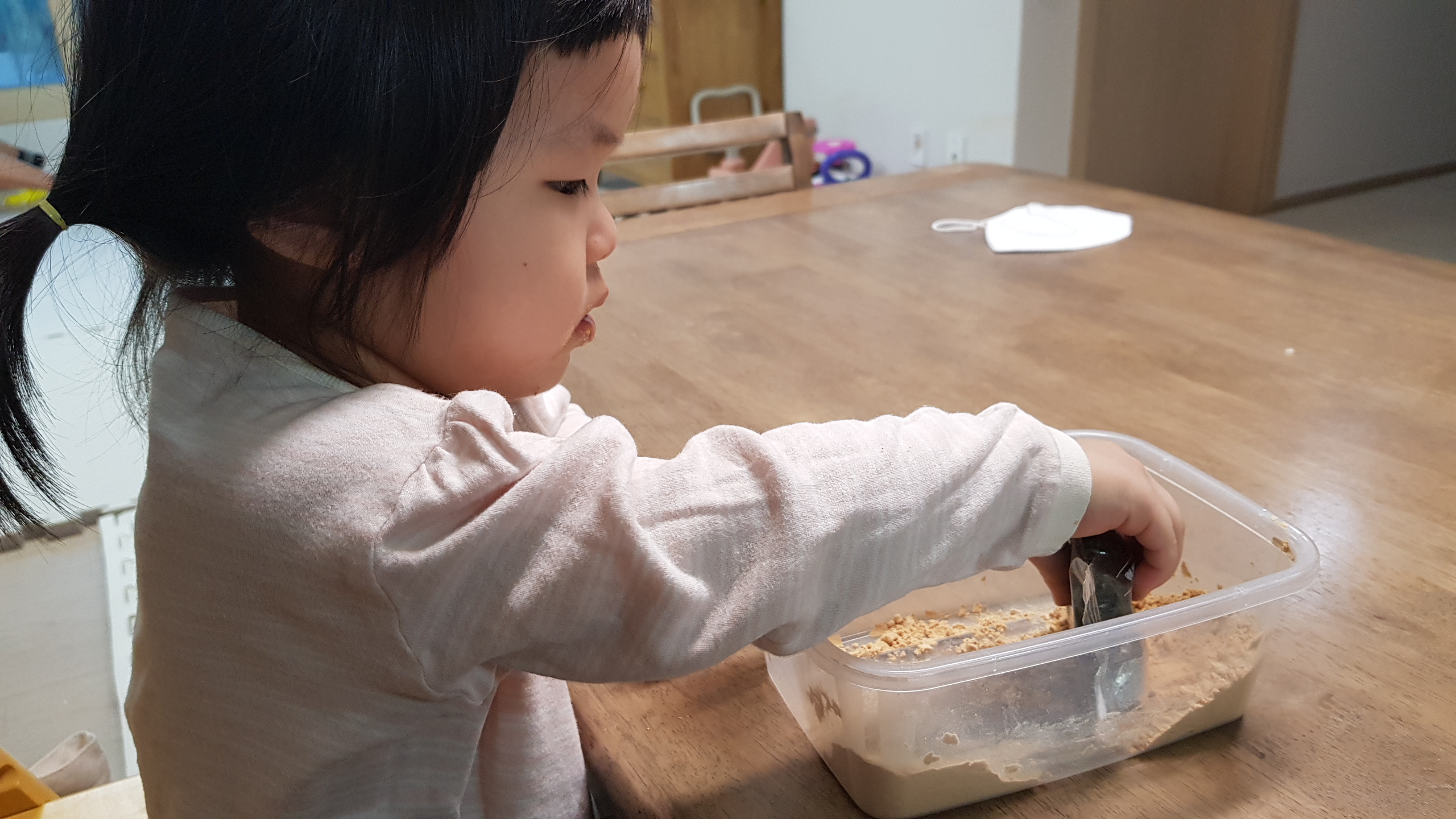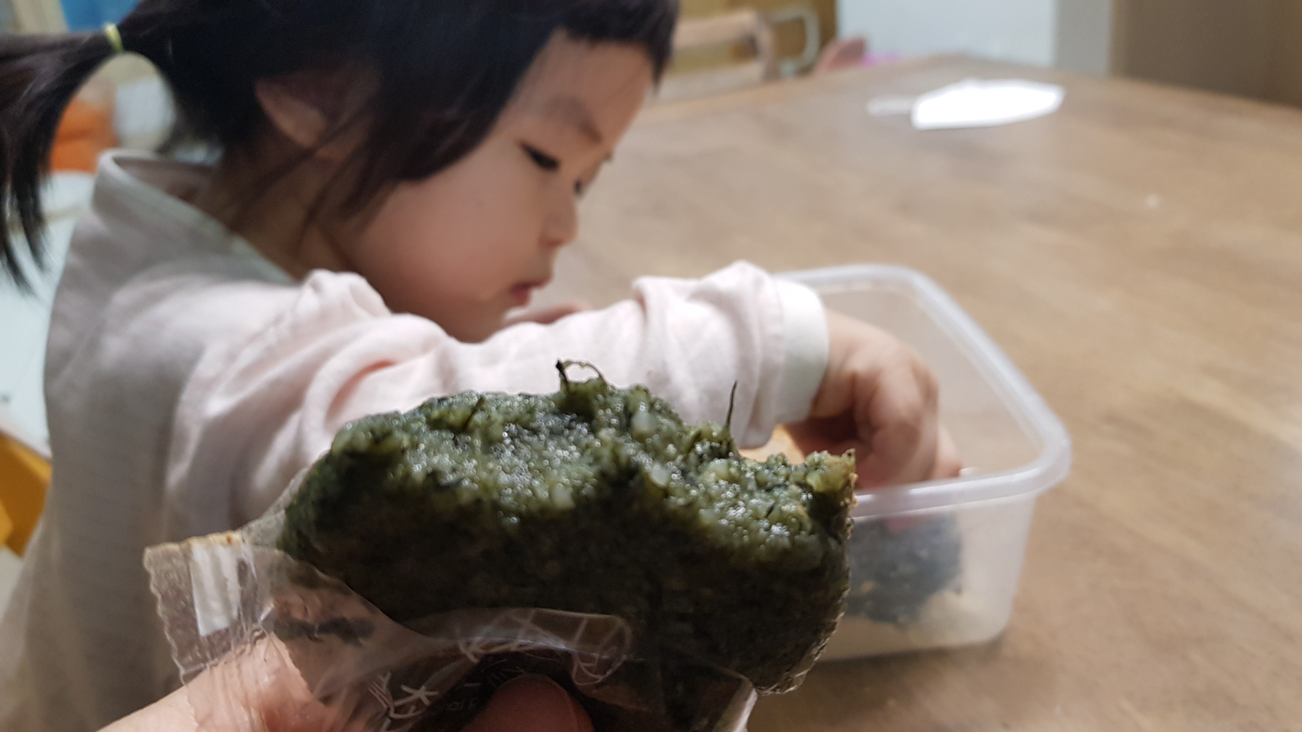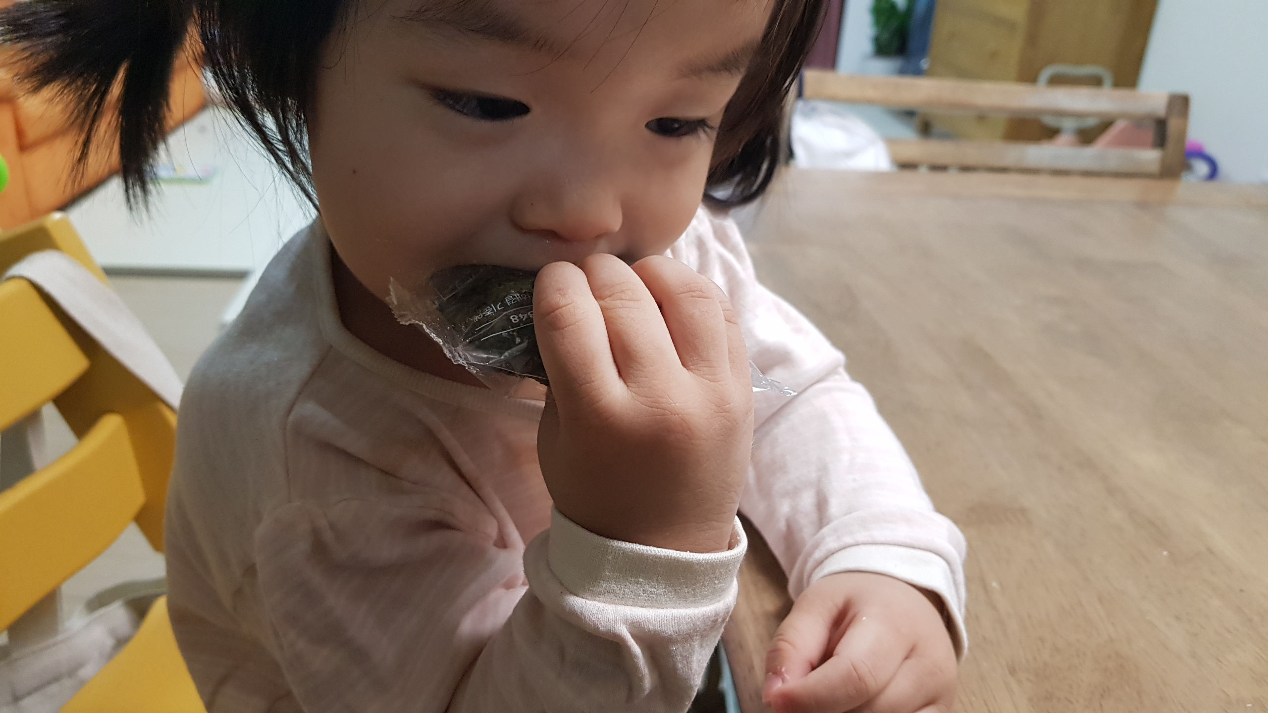 23개월된 둘째랑 식탁에 앉아 저녁대신 떡을 맛있게 먹는 도중(아기가 너무 잘먹어서 ㅎㅎ)