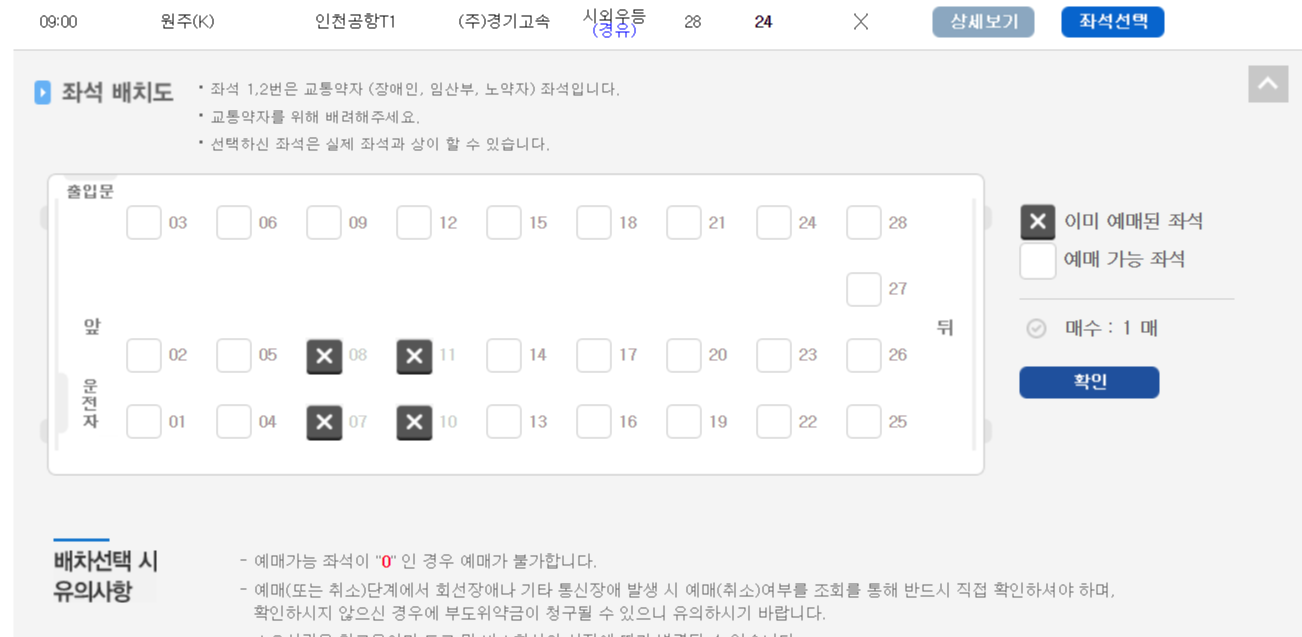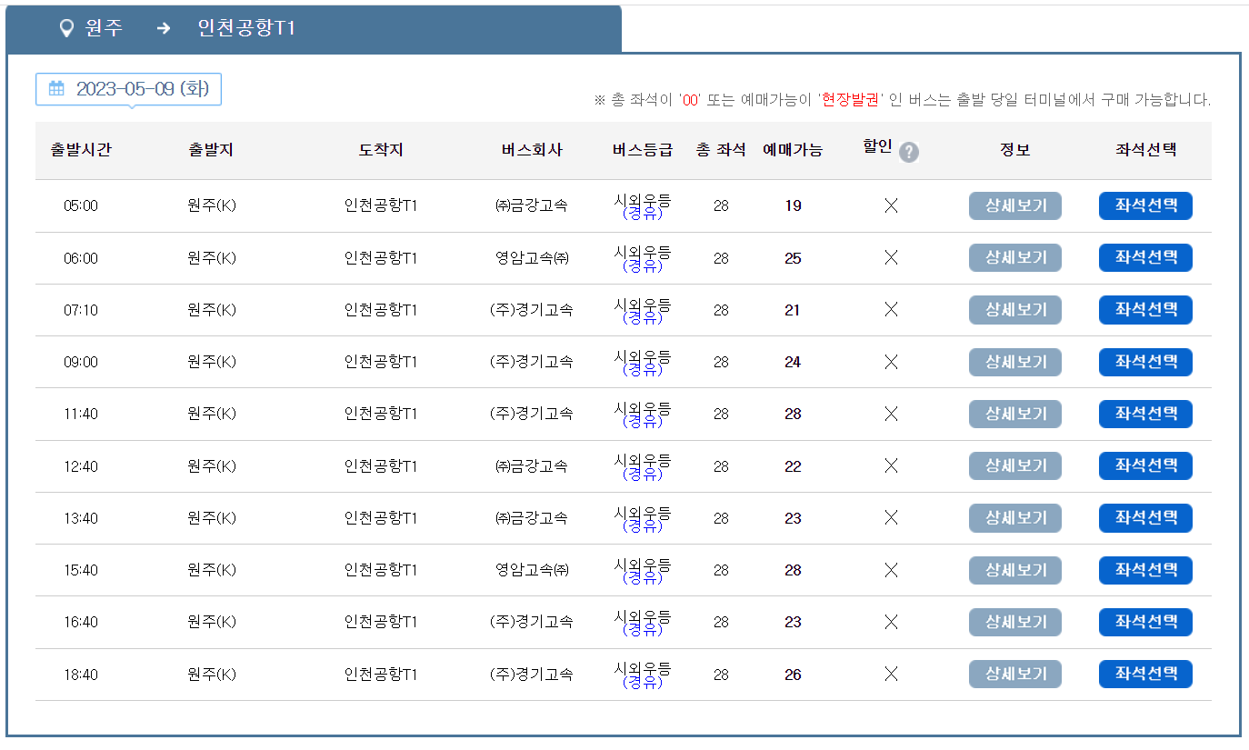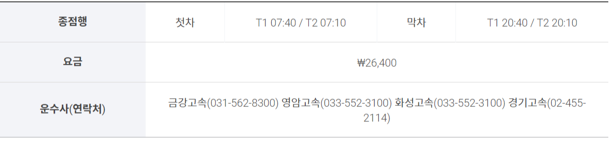 원주에서 인천공항가는 리무진버스 인터넷예매 하는 방법 요금 운행시간표 (인천공항에서 원주가는 시간표)