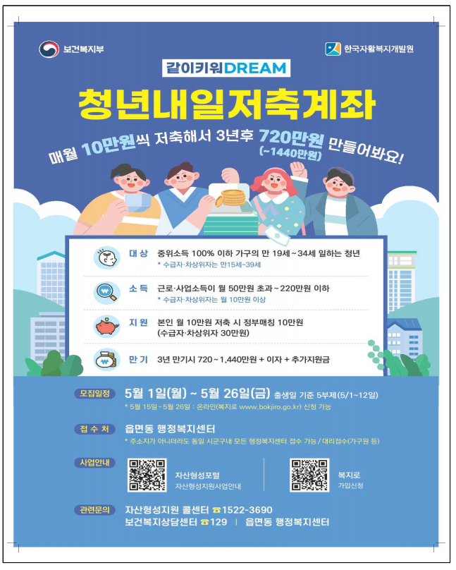 오늘은 5월1일 부터 시작된 청년내일저축계좌에 대해 알려드릴께요