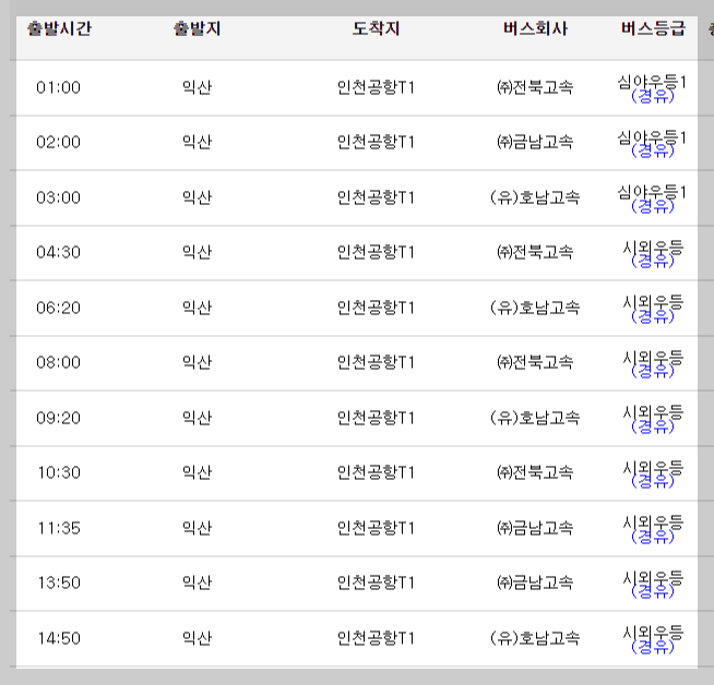 오늘은 익산에서 인천공항 가는 시외 버스 예매방법과 시간표, 요금에 대해 알아볼께요