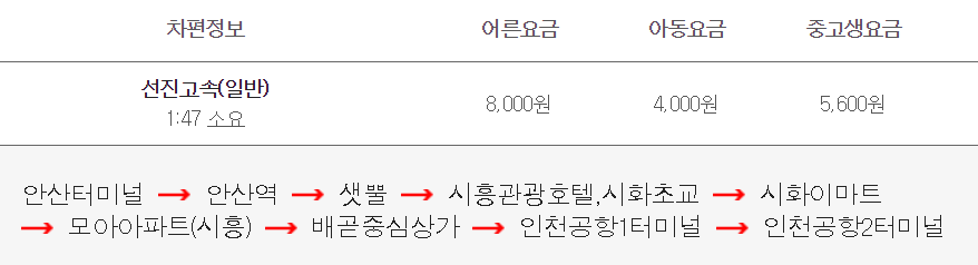 ★ 인천공항가는 7000번 시외 버스 요금 및 노선