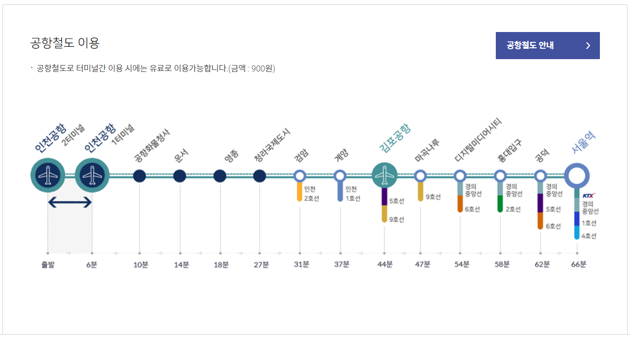 공항철도를 이용하면 서울역에서 인천공항까지 바로 이동할수 있어 편리합니다.