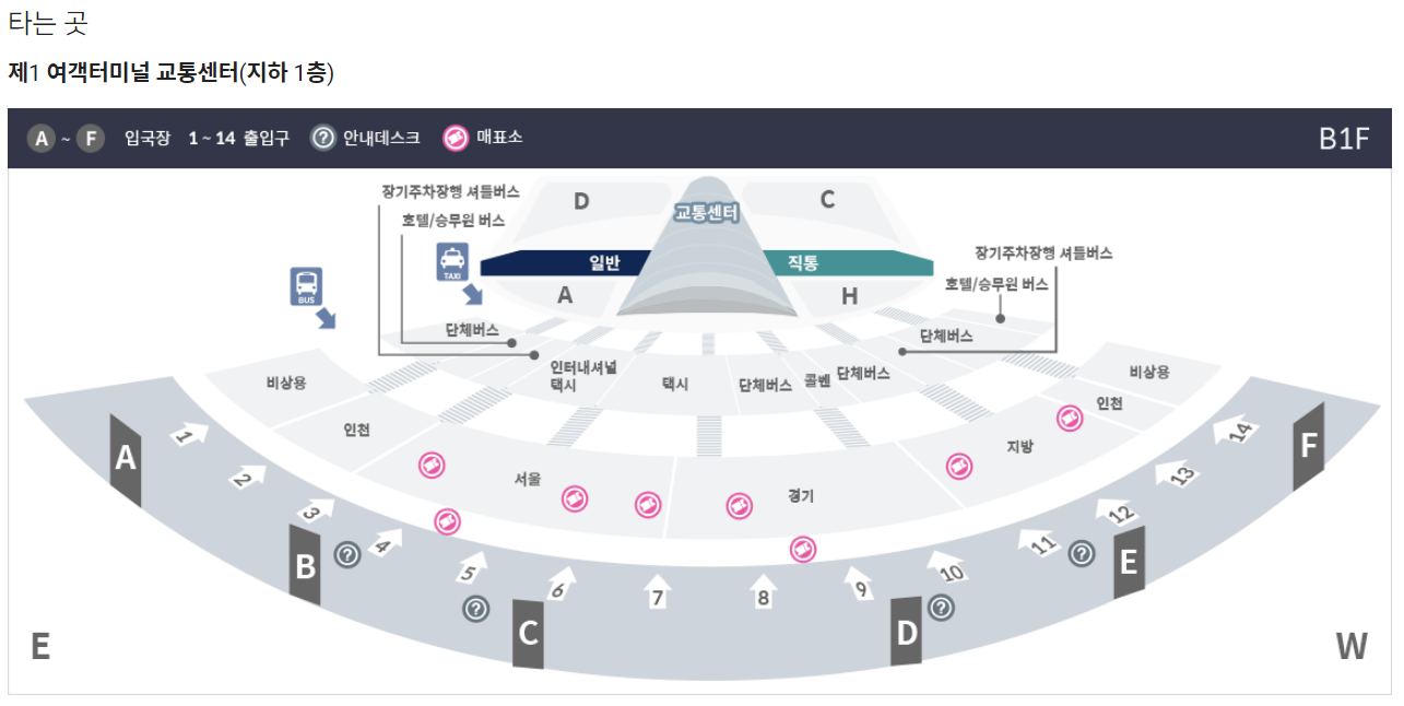 - 승차장 : 제1 여객터미널 3층 중앙 8번 출구