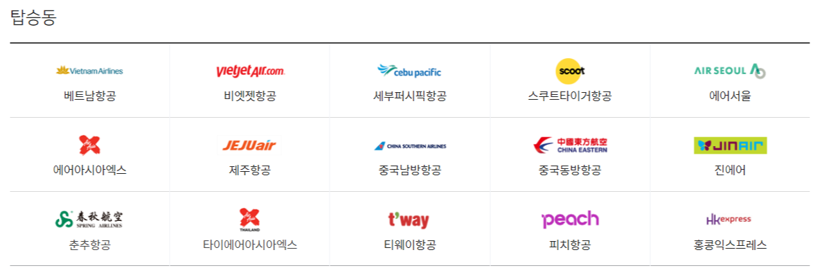 • KLM네델란드항공, 가루다인도네시아, 대한항공, 델타항공, 샤먼항공, 에어 프랑스, 중화항공