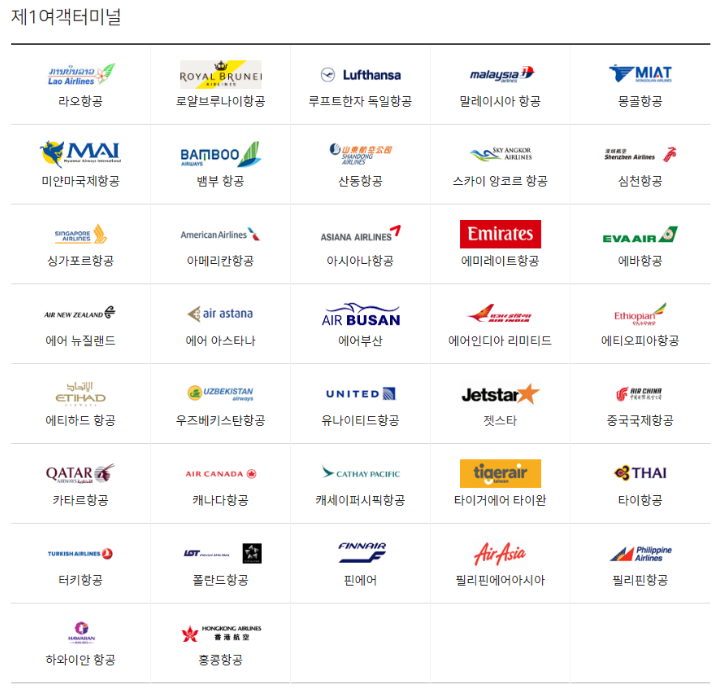 - 라오항공, 로얄브루나이항공, 루프트한자 독일항공, 말레이시아 항공, 몽골항공, 미얀마국제항공, 뱀부항공, 산동항공, 스카이앙코르항공, 심천항공, 싱가포르항공, 아메리칸항공, 아시아나항공, 에미레이트항공, 에바항공, 에어뉴질랜드, 에어아스타나, 에어부산, 에어인디아 리미티드, 에티오피아항공, 에티하드항공, 우즈베키스탄항공, 유나이티드항공, 젯스타, 중국국제항공, 카타르항공, 캐나다항공, 캐세이퍼시픽항공, 타이거에어 타이완, 타이항공, 터키항공, 폴란드항공, 핀에어, 필리핀에어아시아, 필리핀항공, 하와이안항공, 홍콩항공