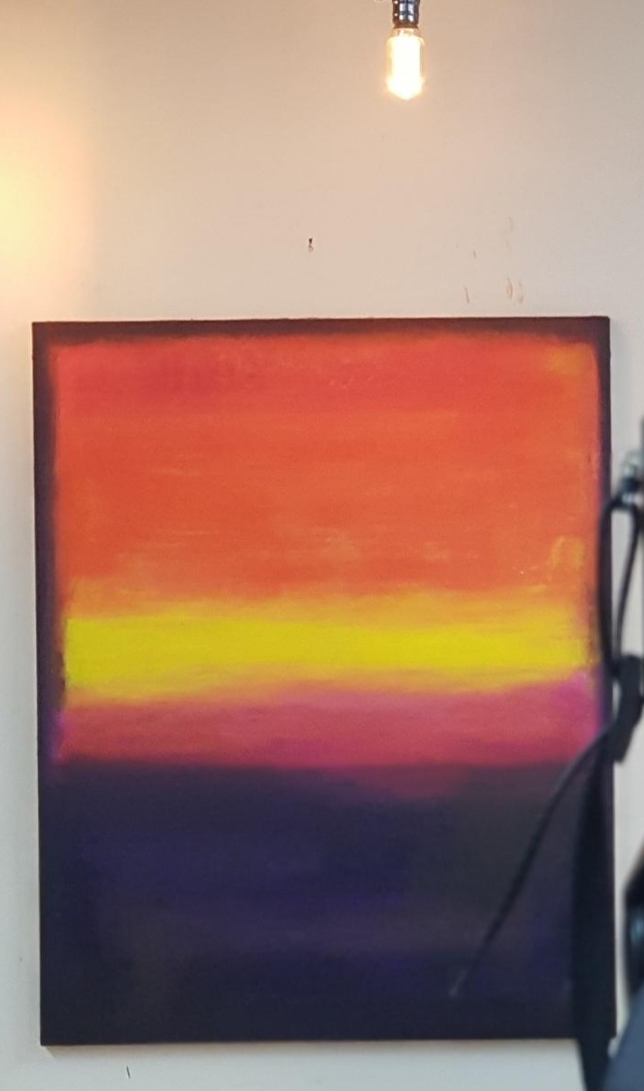 보라색 틀(창문과 창틀) 너머로 보이는 찬란한 일출이 세상을 물들이는 모습을 색으로 형상화!!