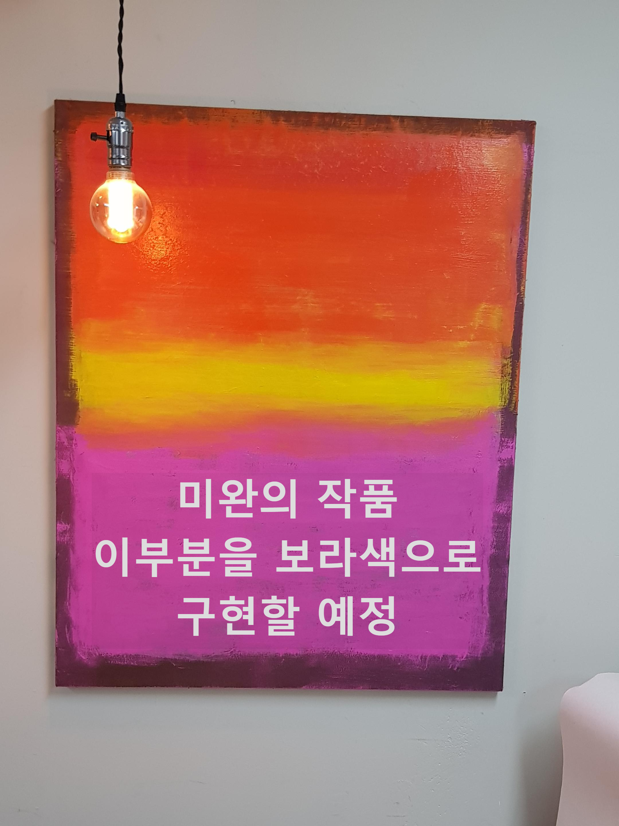 보라색 물감을 구입해 핑크색면 위에 덧칠해 차분한 느낌을 주었습니다.