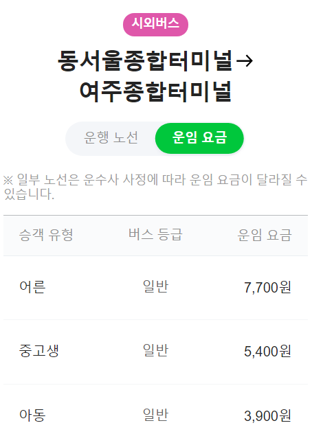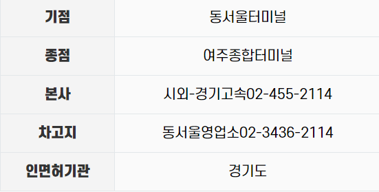 1809번 시외버스 첫차, 막차 시간표 실시간위치확인 (동서울<->여주)