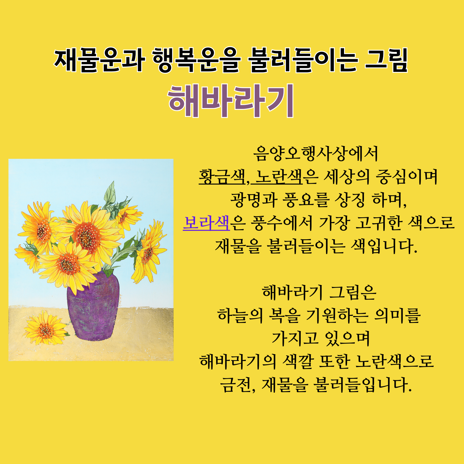 그래서 해바라기의 힘을 이해하고 가정에도 좋은 기운, 금전운을 불러들일 수 있는 해바라기 그림을 직접 그렸고