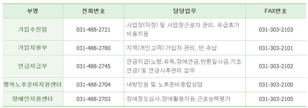 해당 지사의 담당 업무를 수행하는 부서의 연락처가