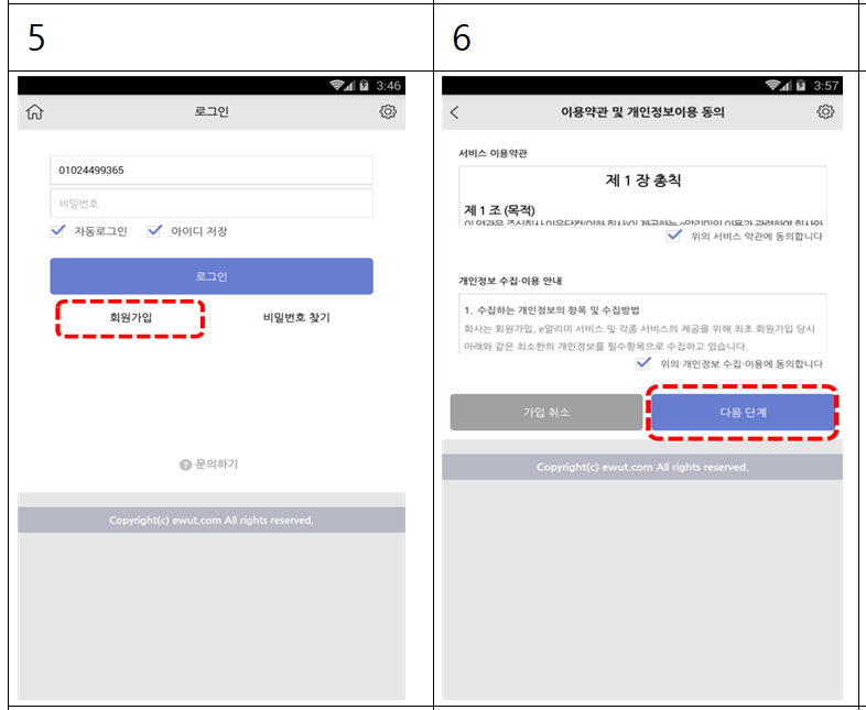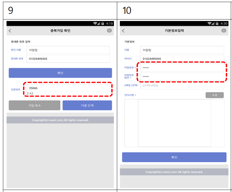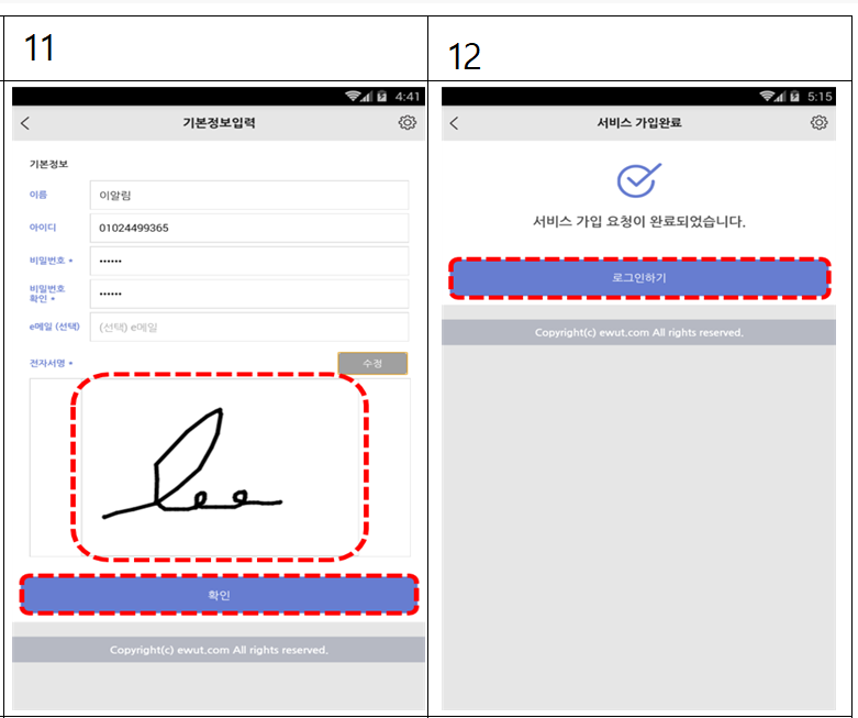 이후의 방법은 아래 앱에서의 회원가입과 동일합니다.