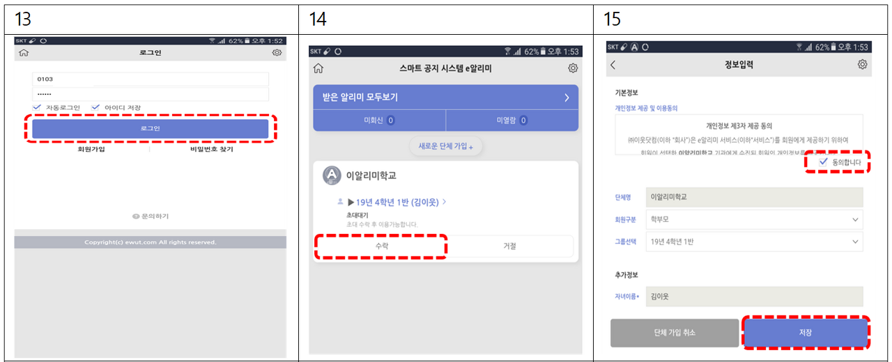 15. 동의합니다에 체크 후 [저장]버튼을 눌러 이용해 주세요.