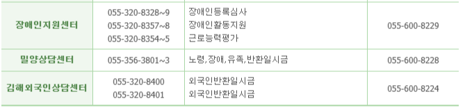 해당 지사의 담당 업무를 수행하는 부서의 연락처가