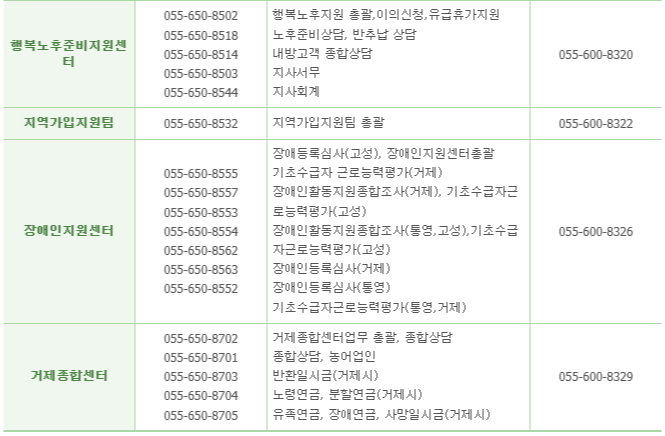 해당 지사의 담당 업무를 수행하는 부서의 연락처가