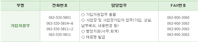 해당 지사의 담당 업무를 수행하는 부서의 연락처가