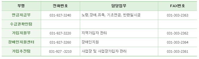 해당 지사의 담당 업무를 수행하는 부서의 연락처가