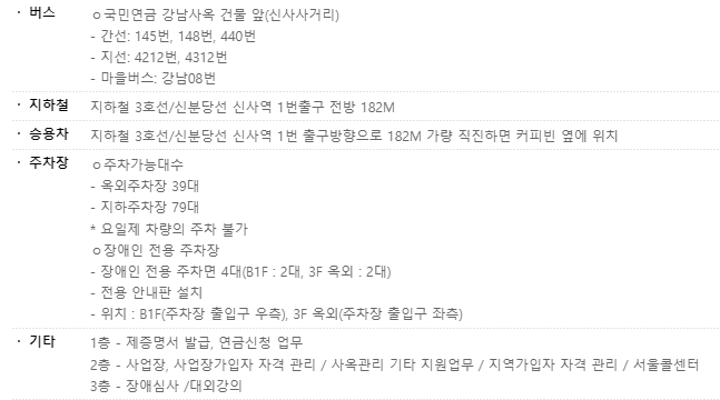 ◆ 국민연금공단 서울남부지역본부 교통편 및 주차